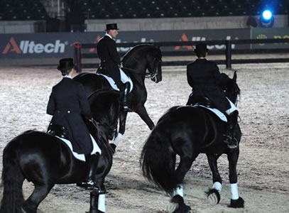Summer of 2010 marked the first time that the Alltech FEI World Equestrian Games were held in the USA. As part of the games an opening ceremony was organized to showcase the event. Different breeds, riding disciplines and musical acts showcased the much-anticipated opening ceremonies, which played in front of a nearly sold-out crowd. Included was William Shatner driving his American Saddlebred as well as the Friesian stallion train from the Netherlands where Brad Cutshall was one of two Americans invited to participate.